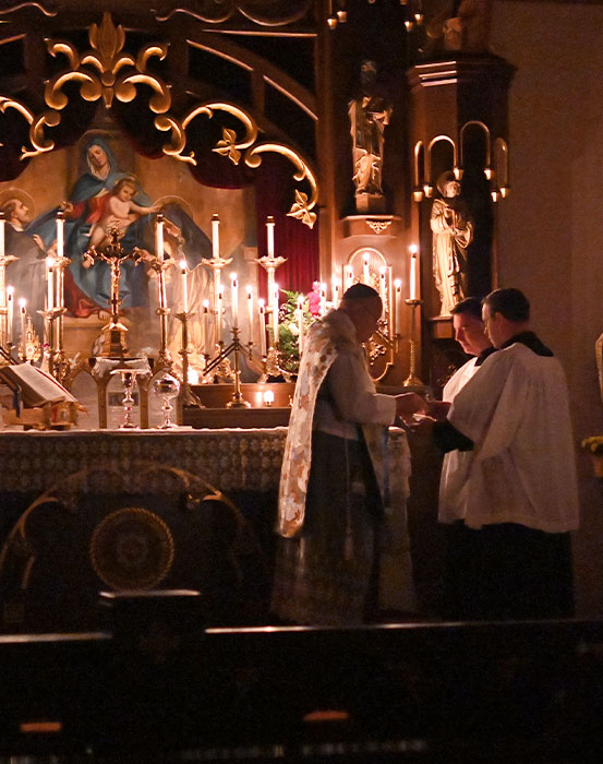 The beauty, solemnity and reverence of this liturgy – the renewal of the Sacrifice of God’s own Son on the Cross – brings Christ into our lives as we receive Him in Holy Communion.